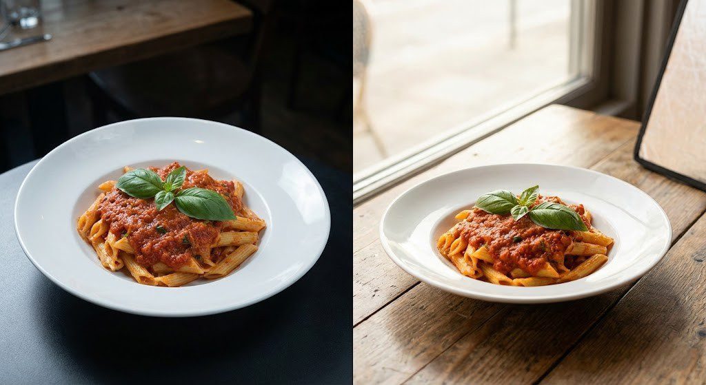 چگونه؟ یک تکه مقوا یا فوم سفید بردارید و آن را در سمت مقابل منبع نور (پنجره یا چراغ) قرار دهید. نور تابیدهشده روی مقوا، به سمت غذا بازتاب شده و سایههای سیاه و خشن را ملایم میکند.
